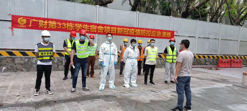 2022年3月18日,为全面做好在建项目疫情防控工作,全力提升疫情防控应急处置能力,基建处在广州校区北区体育综合馆项目和第33栋学生宿舍项目分别组织开展新冠肺炎疫情防控应急处置演练。建设单位、监理单位、施工单位相关人员参加了演练。