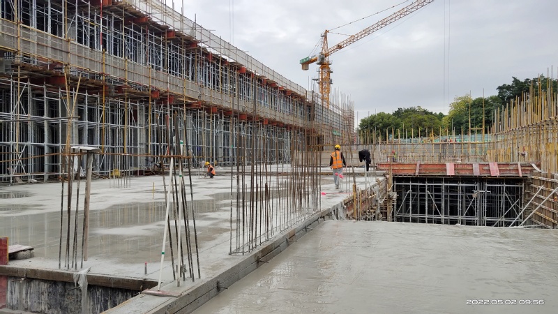2022年5月1日,随着广州第33栋学生宿舍项目地下室顶板最后一方混凝土浇筑完毕,标志着该项目已经正式完成了基础工程、地下室主体结构工程关键节点施工,接下来施工重点将由地下部分转为地上部分,全面进入主体结构建设阶段。