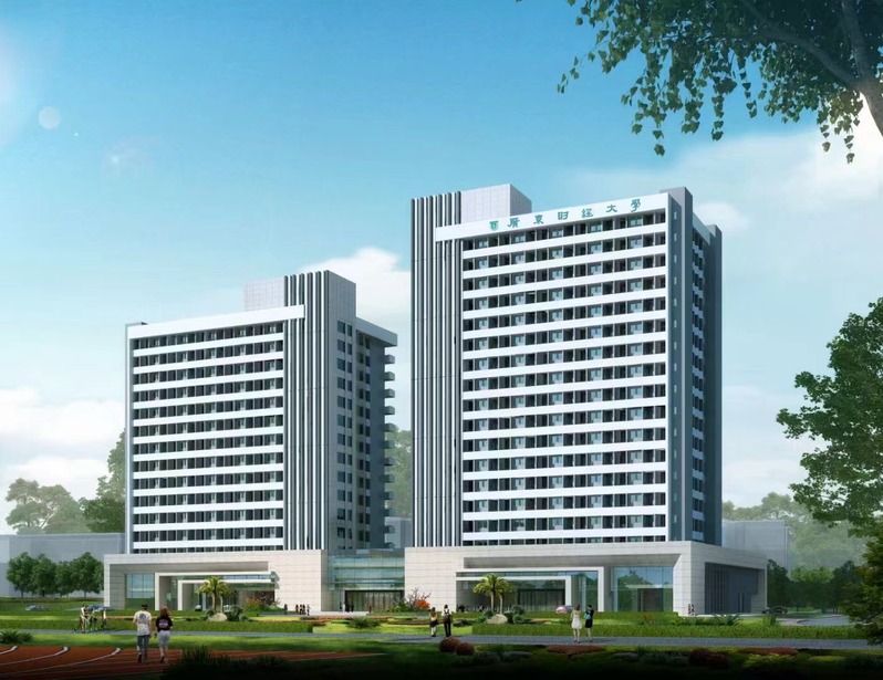 该项目由基建处负责牵头实施,施工单位为广东省第二建筑工程有限公司,该项目总建筑面积约51300平方米,其中地下1层,裙楼2层,东塔16层,西塔19层,主要包括学生食堂、学生公寓、地下车库、周边道路及景观绿化等配套工程。2021年11月正式开工建设,计划2023年4月完成主体结构工程,2023年8月整体建成投入使用。该项目建设完成后为广州校区新增约3600个学生床位,新增食堂面积11000平方米,将进一步改善学校办学条件,为建成大湾区一流财经大学提供更好的硬件支持。