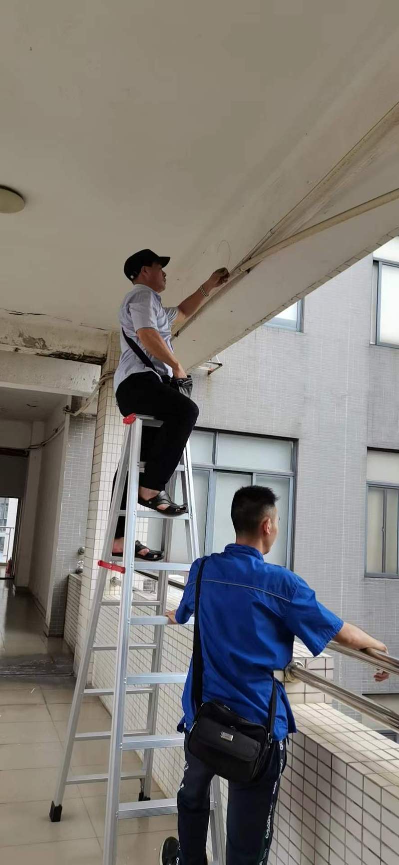 清扫雨棚落叶