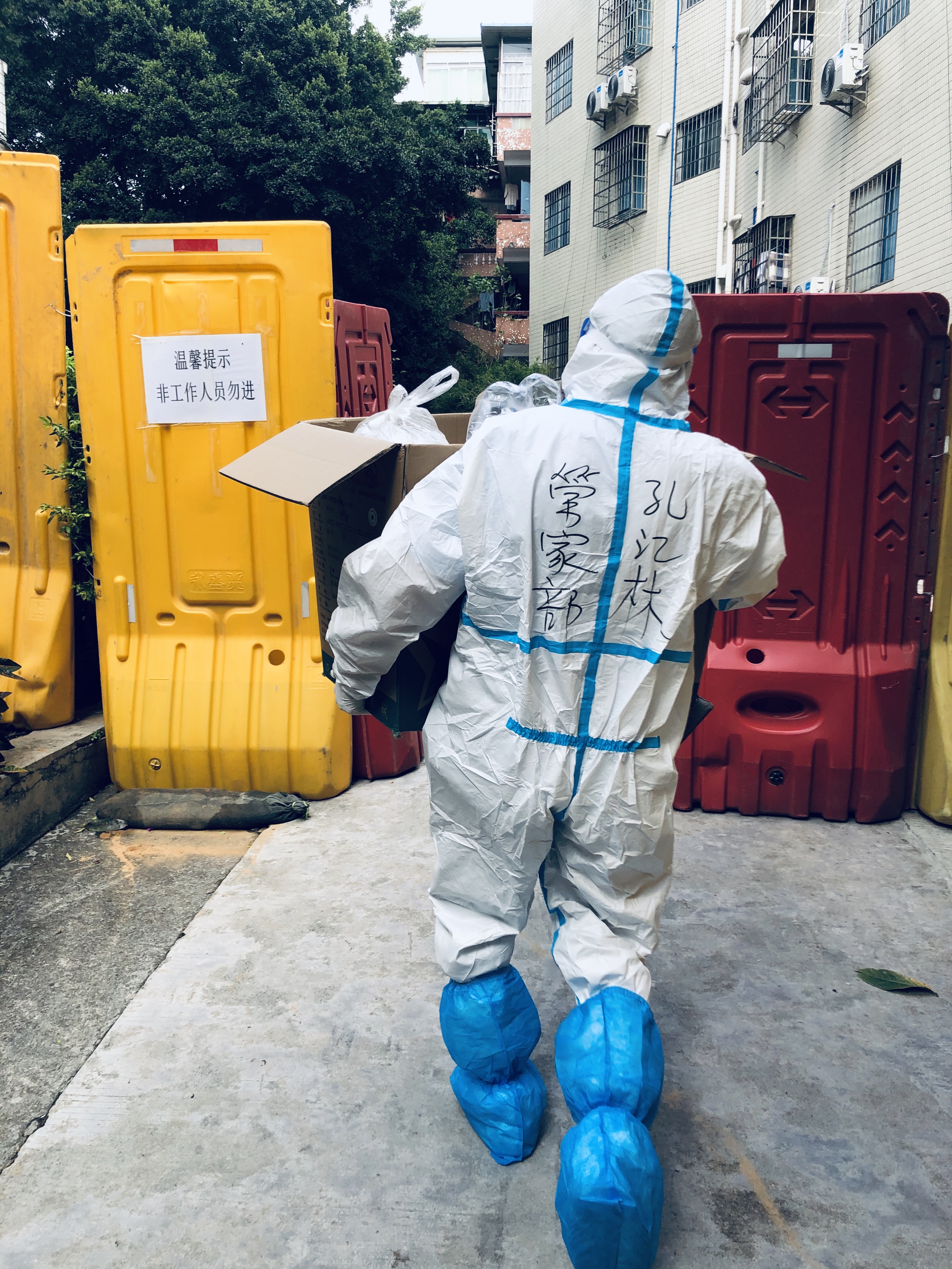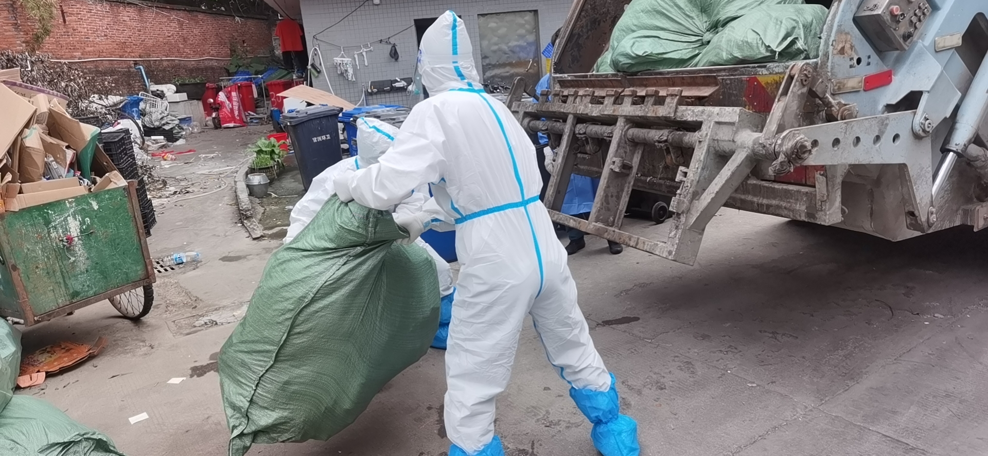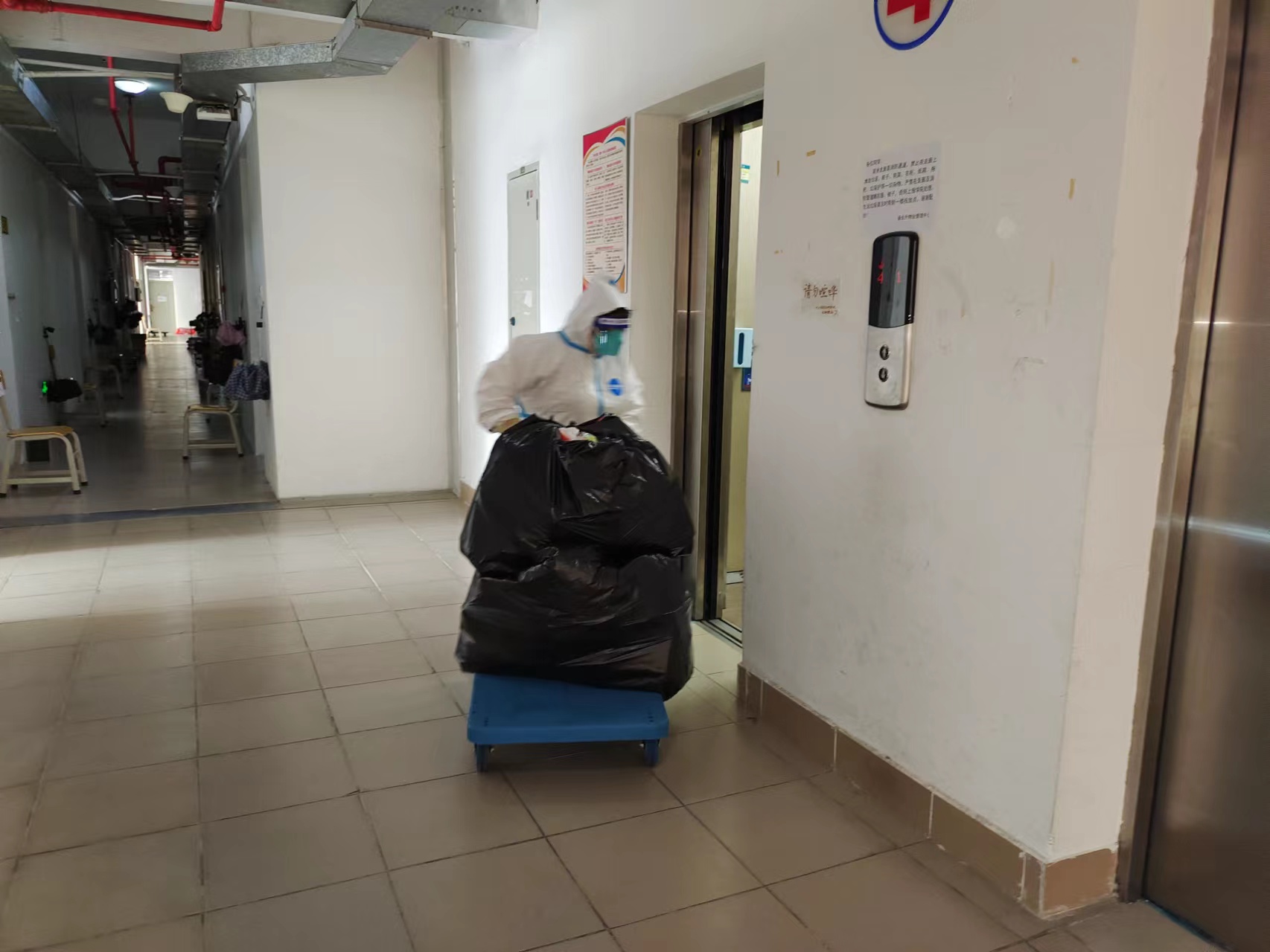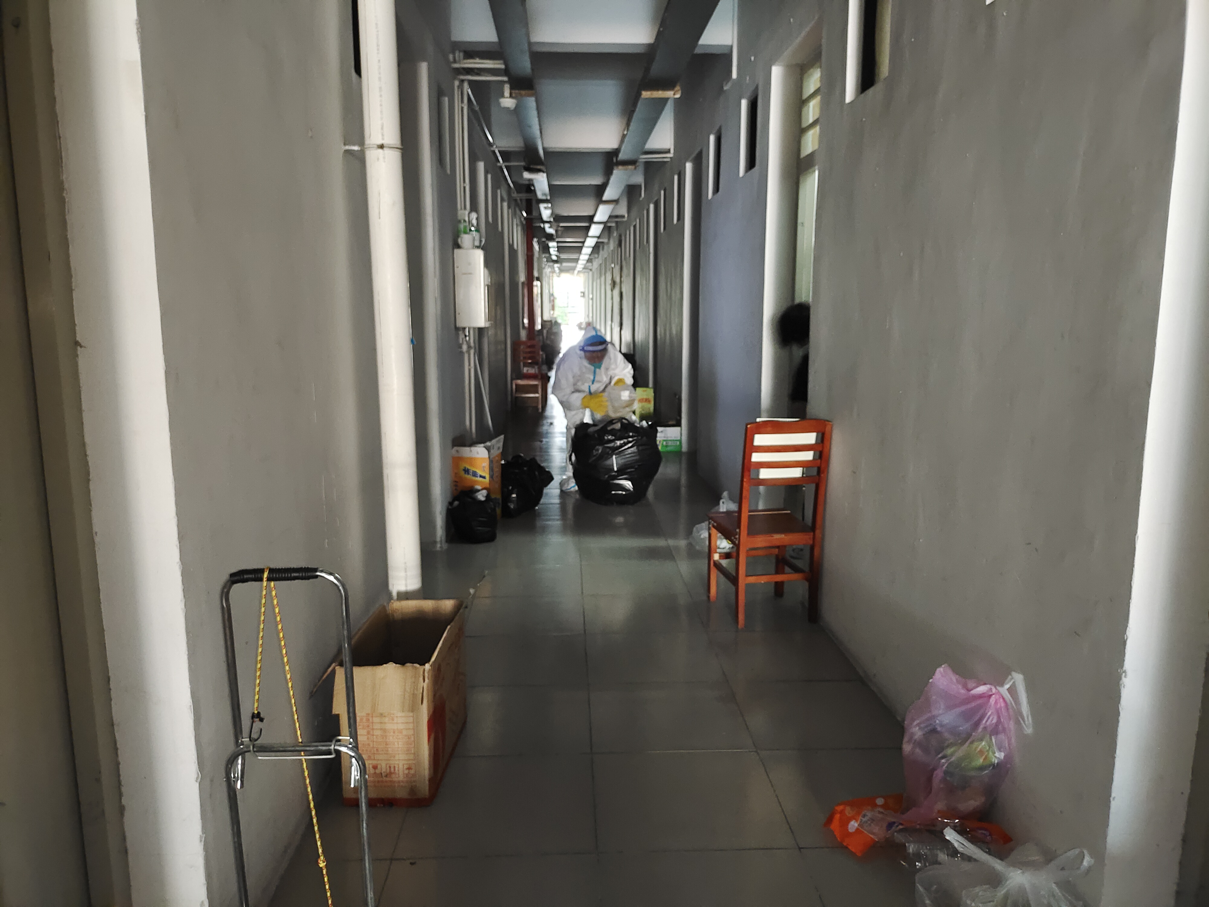 封控小区内学生宿舍门口垃圾清运