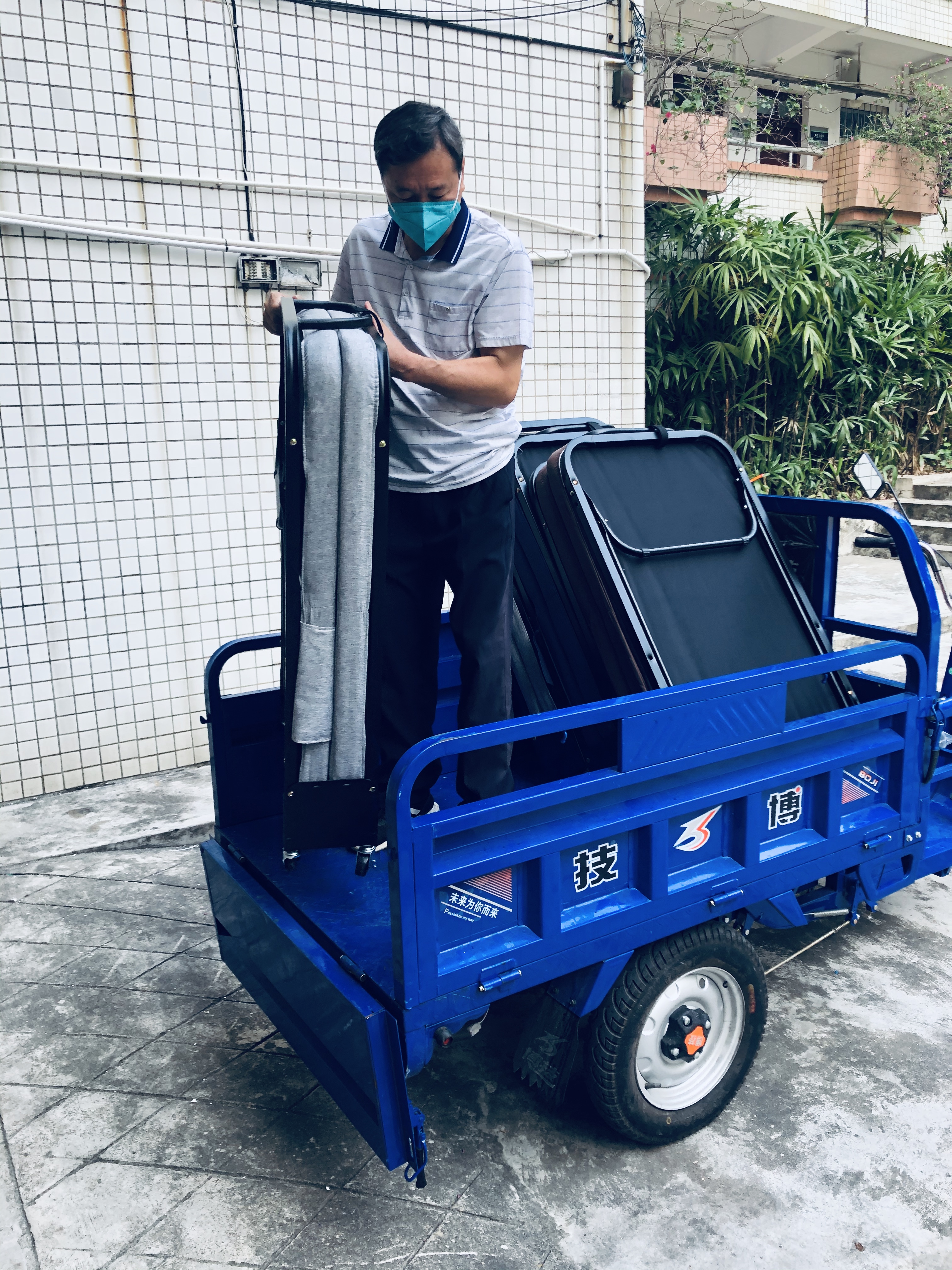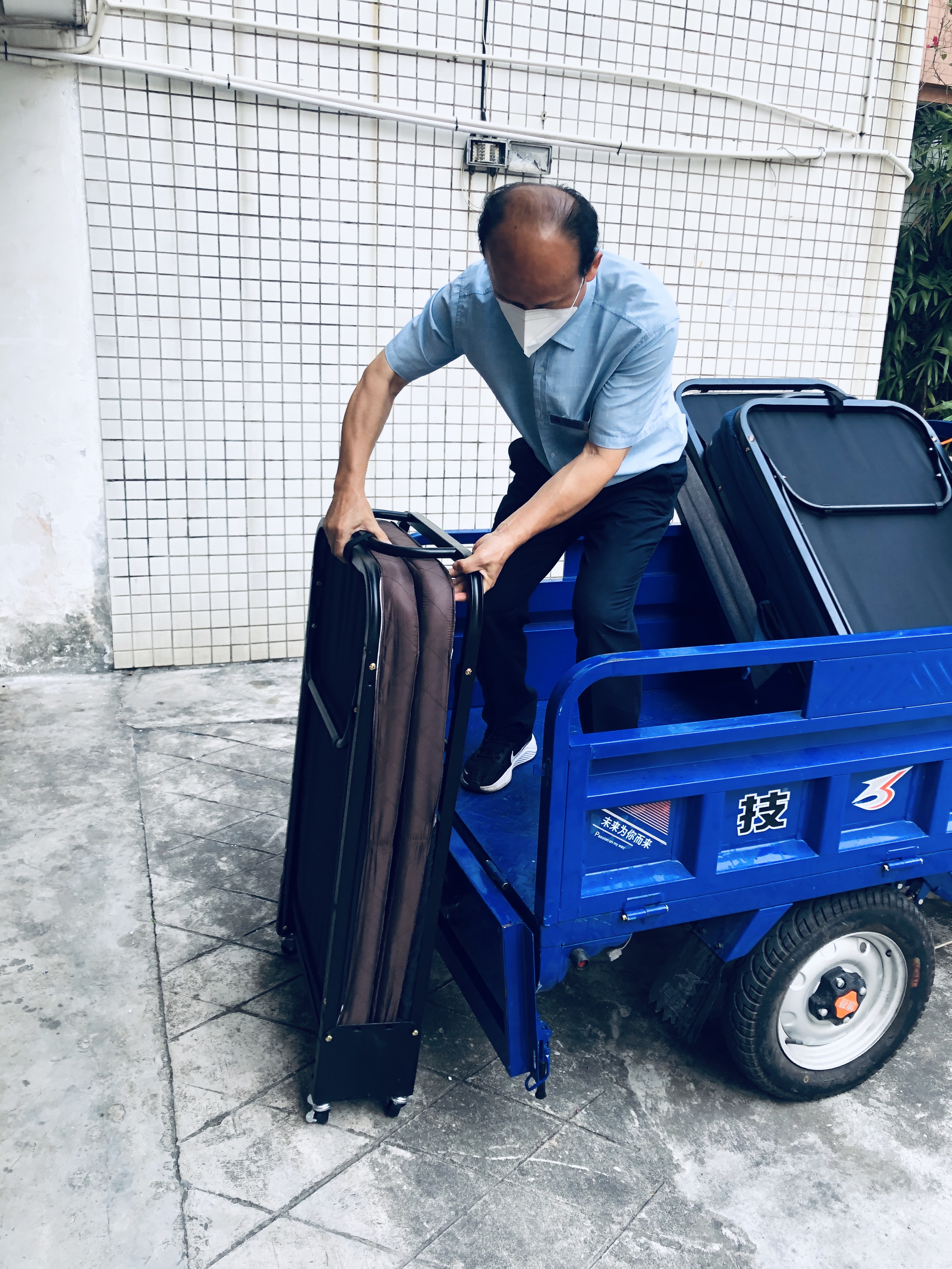 搬运折叠床,摆放在备用隔离区