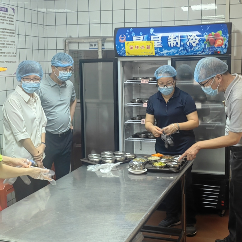 为认真贯彻落实《广东省教育厅关于印发全省学校“校园餐”专项整治行动工作方案的通知》的文件精神,持续推进我校“校园餐”专项整治工作走深走实,7月3日上午,学校纪委书记王志云带队对广州校区学生食堂开展抽查检查工作,通过深入学生食堂食品加工操作间、调料库、冷藏库、售卖窗口等重点场所进行走访检查,详细了解原材料存储、加工、卫生、消防安全和价格服务等方面的情况。